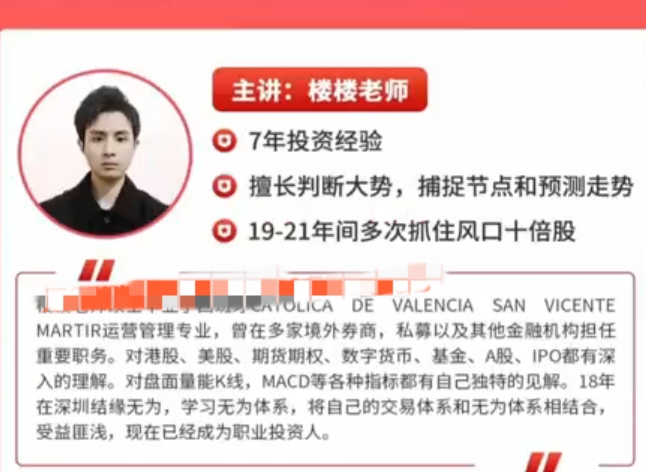DE VALENCIA SAN VICENTEMARTIR运营管理专业,曾在多家境外券商,私募以及其他金融机构担任重要职务。对港股、美股、期货期权、数字货币、基金、A股、IPO都有深入的理解。对盘面量能K线,MACD等各种指标都有自己独特的见解。18年在深圳结缘无为,学习无为体系,将自己的交易体系和无为体系相结合,受益匪浅,现在已经成为职业投资人。